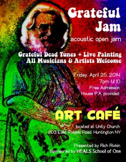 | Grateful Jam Acoustic Open Jam - Long Island Music and Art Festival 2014 at Art Cafe (at Unity Church) in Huntington, Long Island, New York. |