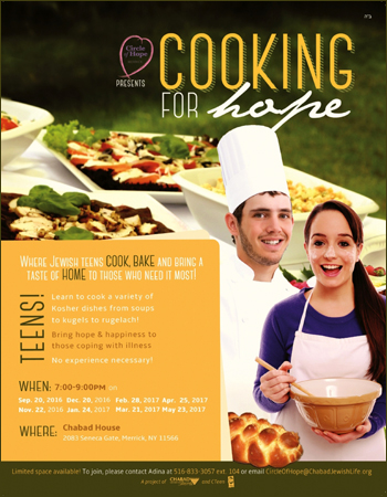 Cooking For Hope Culinary Classes For Jewish Teens 2016 2017 at Chabad House in Merrick, Nassau County, Long Island, New York.