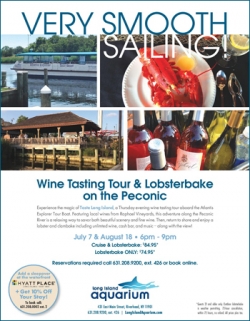 | Taste Long Island: Lobsterbake and Wine Tasting Cruise Summer 2016 at Long Island Aquarium in Riverhead, Suffolk County, Long Island, New York. |