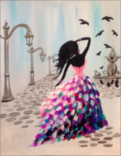 | Women's Night Out Networking Paint and Sip Event: Beautiful Dress Painting at Pinot's Palette in Bay Shore, Suffolk County, Long Island, New York. |