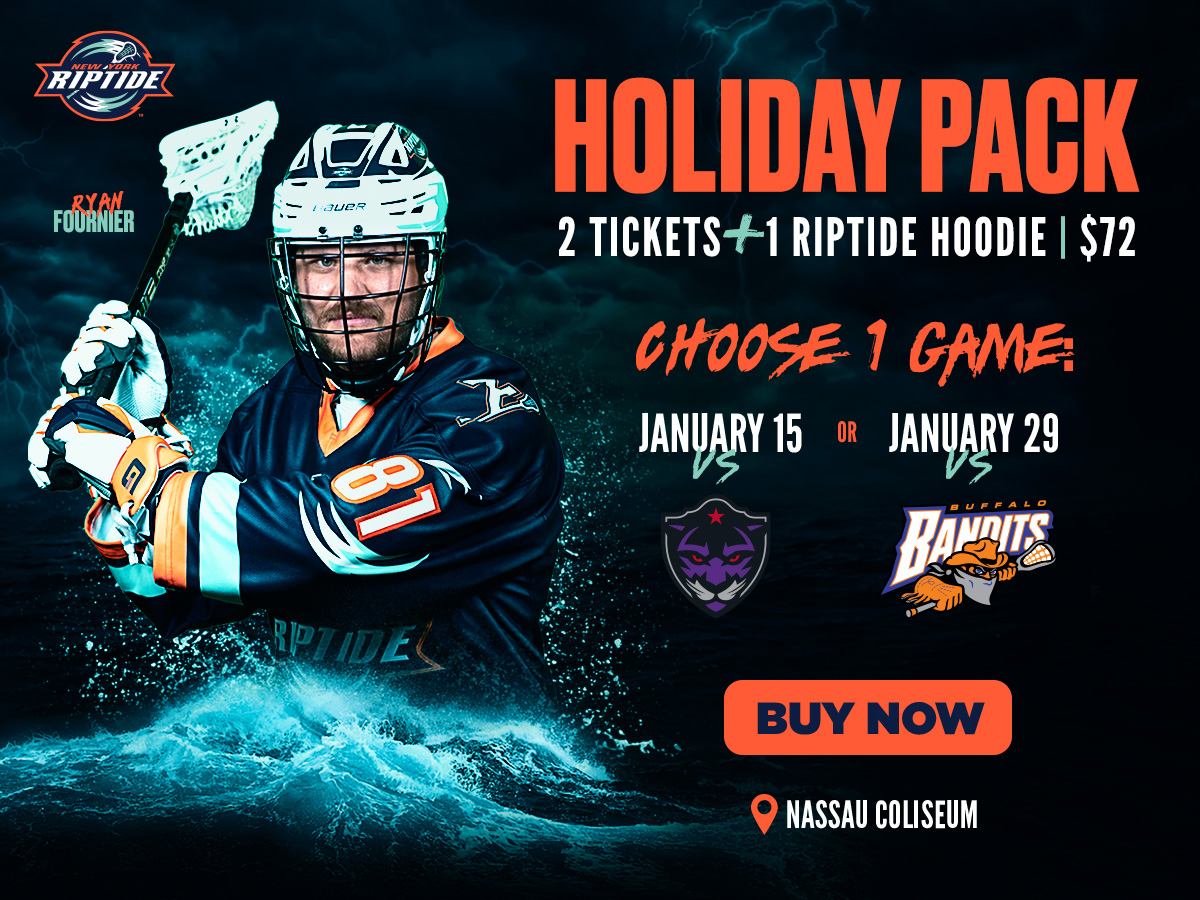 The New York Riptide has the perfect last minute holiday gift! Enjoy the excitement of indoor box lacrosse with the Riptide Holiday pack. You’ll receive 2 tickets to your choice of a January game PLUS a Riptide hoodie – all for just $72. Get your tickets now at NewYorkRiptide.com. |