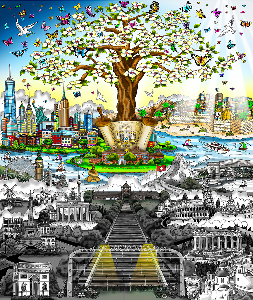 The exhibition will feature several new works including "After the Darkness," a limited edition release created exclusively for HMTC, as well as four plexiglass sculptures each celebrating a Holocaust Hero, and an original painting celebrating more than thirty individuals who risked their lives to save countless Jews during WWII. The exhibition will also include a selection of Mr. Fazzino's Judaic-themed artwork from the last twenty-five years.
