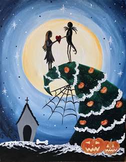 A Christmas Nightmare Painting Holidays 2017 Pain and Sip Event at Pinot's Palette in Bay Shore, Suffolk County, Long Island, New York.
